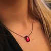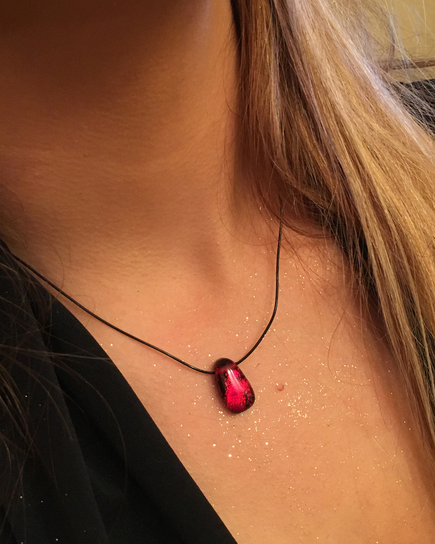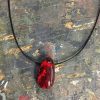 Blood-colored glass drop necklace, handmade to sparkle with deep crimson, ruby and garnet tones.